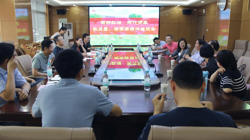 最后张旻书记代表学部向张立昌老师和谢秀英老师赠送鲜花与纪念品,并对两位老师为学部事业发展做出突出贡献表示衷心的感谢。希望两位老师退而不休常回家看看,继续指导并关注学部的发展,践行“西部红烛 两代师表”传承教育学人精神。