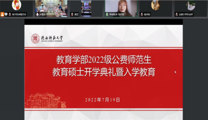 随后,张文兰对2022级公费师范生教育硕士进行入学教育。她主要介绍了研究生学习模式改革意见、研究生培养方案、并对学校规章制度和研究生学籍管理规定解读。王楠对2022级公费师范生进行思想教育及工作安排。19日下午,2022级公费师范生教育硕士教学工作正式开展。
