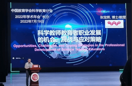 国际科学教育学会理事会(ICASE)主席、565net必赢官方网张宝辉教授应邀参加会议并做主题报告“科学教师教育者的职业发展机会、挑战与应对策略”,解释了科学教育教师工作者的含义与身份特征,阐述了科学教师教育者应具备的核心素养,呼吁关注科学教师教育者的焦虑现状和职前培养,探讨了科学教师教育者应对国际科学教育新理念与新挑战、职业发展的策略与路径。
